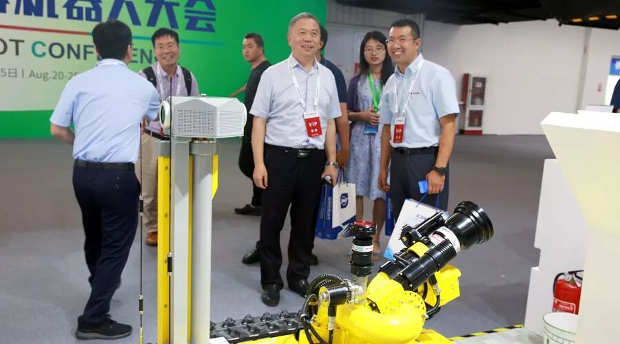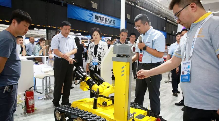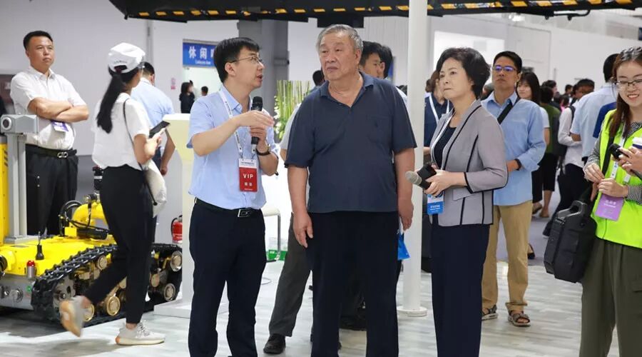 ▲20日,中共中央政治局委员、北京市委书记蔡奇,全国政协副主席、中国科协主席万钢,工信部部长苗圩等领导莅临展位参观指导 。蔡奇赞道,目前中信消防机器人产品技术日趋成熟,已形成体系化;万钢指出,随着产品创新和应用推广,中信特种机器人产业已迈入良性发展阶段。