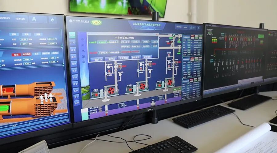 天祝煤业公司以高度精细化和智能化的控制系统为核心,实现了排水系统的泵、阀等设备及整个排水过程的自动化监控。通过智能传感技术,对井下排水系统的数据进行相关数据全面采集,实施掌握排水系统的各项监测数据。“系统通过通讯接口将排水系统无缝接入到矿山集控平台,实现了泵房的‘无人值守’。为提高排水效率,采用了“前置泵+射流泵”的排真空方式,排水更加安全高效。各台水泵配置矿用高压软启动器,减少启动过程中的冗余转矩,消除设备启动过程中对机械和电网的冲击,改善了电网的供电质量。”集控技术员陈辅刚介绍道。