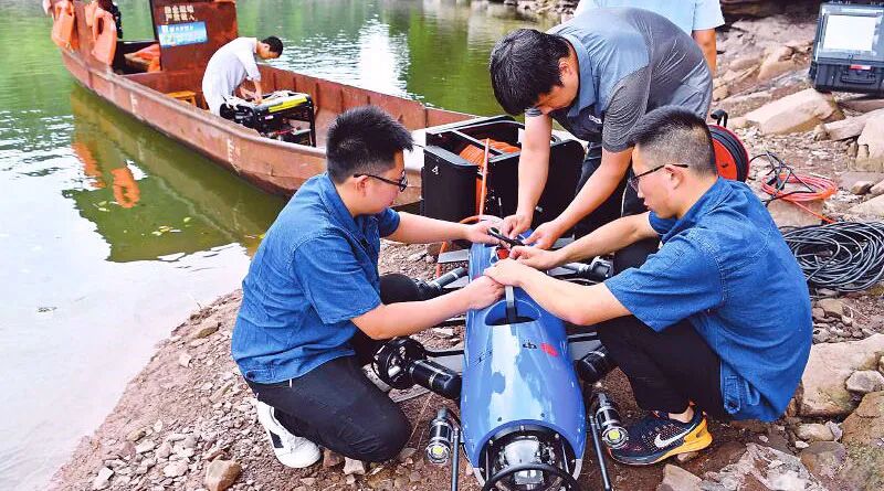 ▲ 机器人潜入磨滩河水库