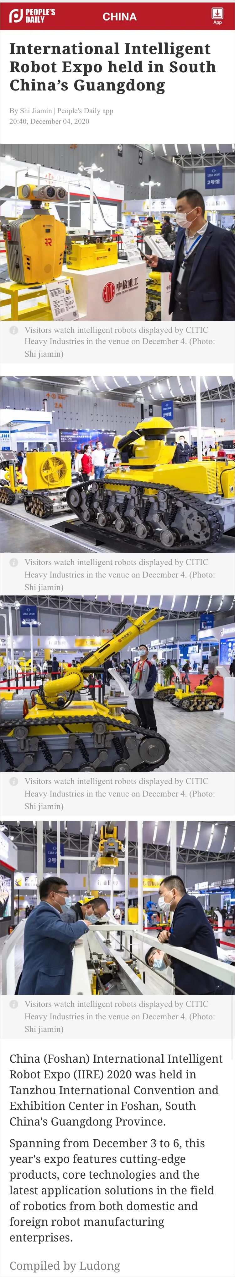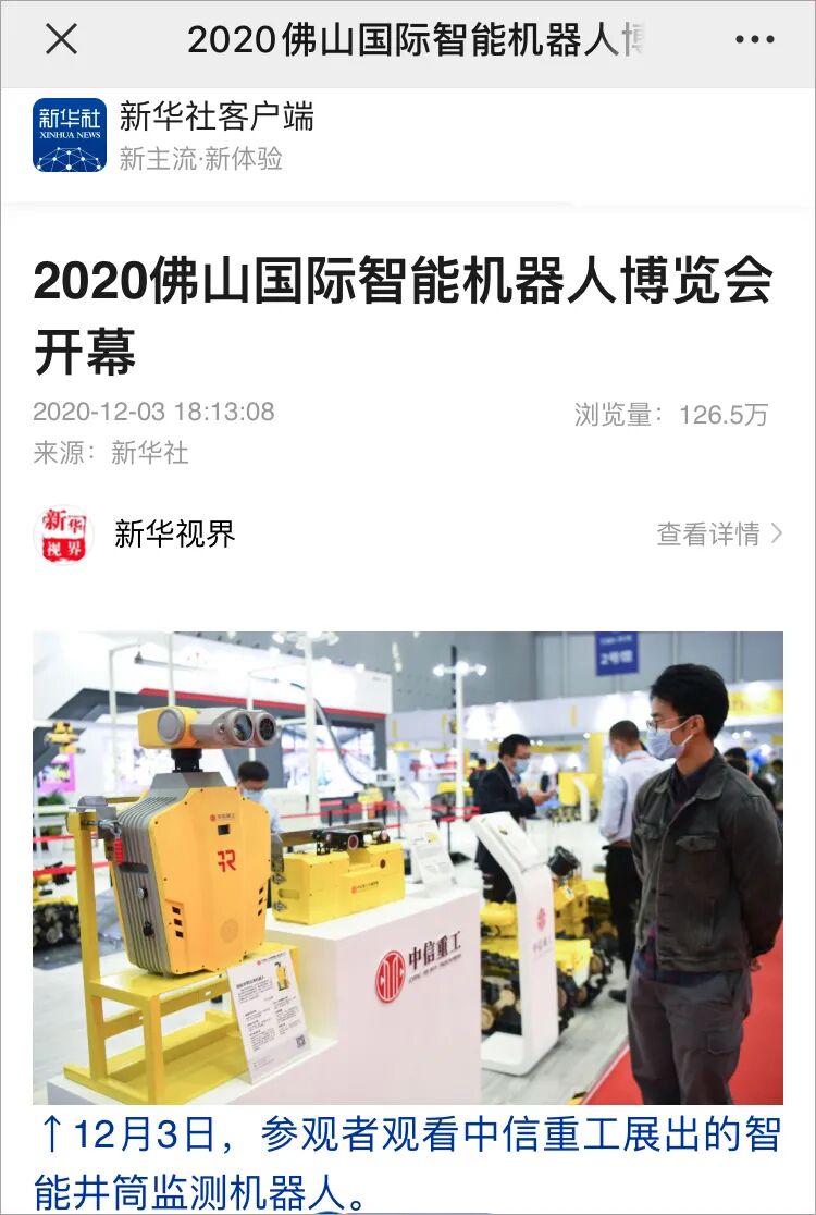 12月3日,备受瞩目的2020佛山国际智能机器人博览会在广东佛山潭洲国际会展中心隆重举行。本次博览会以“全球变局下的合作与共赢”为主题,汇集国内外机器人制造企业,展示机器人领域的前沿产品、核心技术以及应用解决方案。中信重工开诚智能携“特种机器人军团”惊艳亮相,在世界舞台大放异彩。