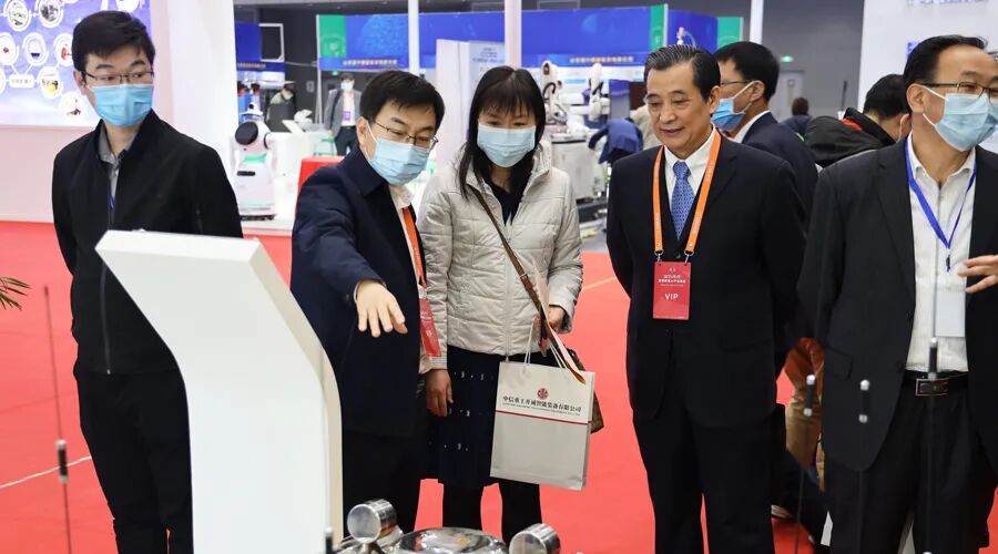 ▲ 中国职业技术教育学会会长、教育部原副部长鲁昕参观指导