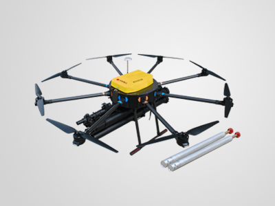 - 空中消防灭火功能:可一次性搭载4 枚灭火弹,发射器由专用支架固定悬挂于无人机腹部,由无人机操控人员控制瞄准与发射。